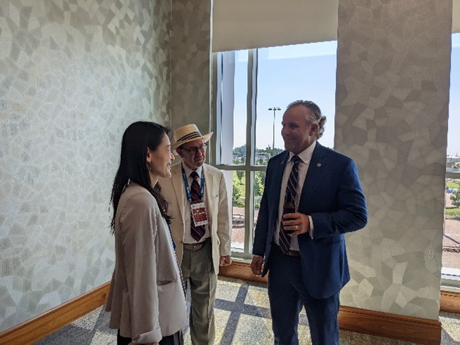 年次総会において、当事務所主催のレセプションを開催しました。1時間ほどのレセプションでしたが、約80名の来場があり、当事務所の活動内容や全米州政府協議会との関わりなどを説明しながら、参加者との交流を深めました。参加者の中には、秋にインターンシッププログラムで来日予定の方や、南部地区(特にテキサス州)に進出している日系企業と関わりがある方など、日本に興味関心を持つ方が多く見受けられました。CSG South会長のGreg氏も来場し、当事務所との引き続きの関係の構築を望まれました。
